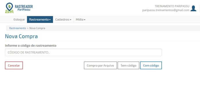 Compra sem código → Para produtos que não possuem rastreabilidade PariPassu e você terá que gerar um código de rastreamento;