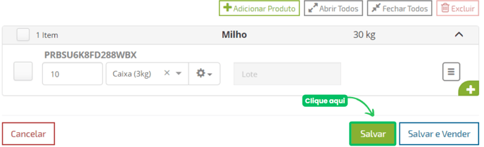 Clique aqui para conferir o passo a passo sobre como preencher os campos de quantidade e embalagem