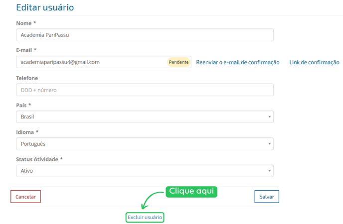 Atenção! Só é possível excluir um usuário do sistema quando o mesmo ainda não confirmou seu e-mail de acesso.