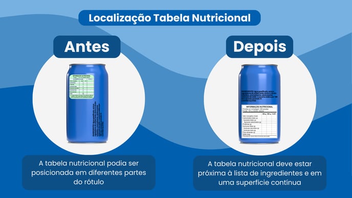 Antes: A tabela nutricional podia ser apresentada em diferentes cores e posições no rótulo, o que causava dificuldade de compreensão por parte dos consumidores, devido ao rótulo se esconder em meio as cores de embalagens, ter tamanhos muito pequenos, não seguir um padrão de escrita e formatação.